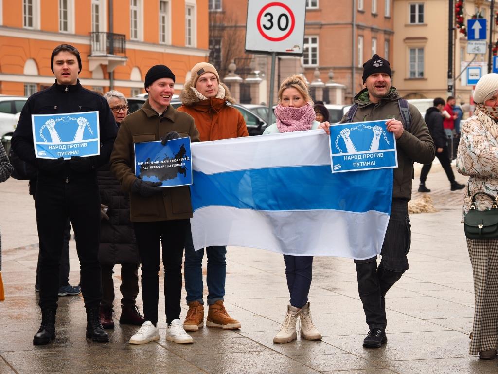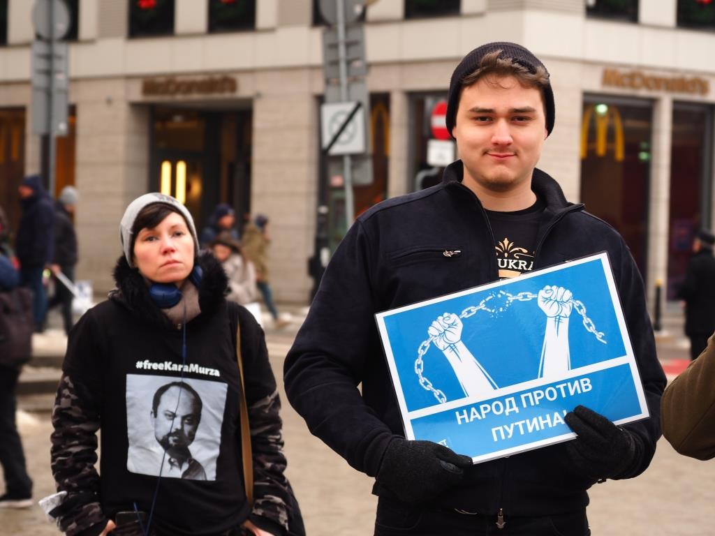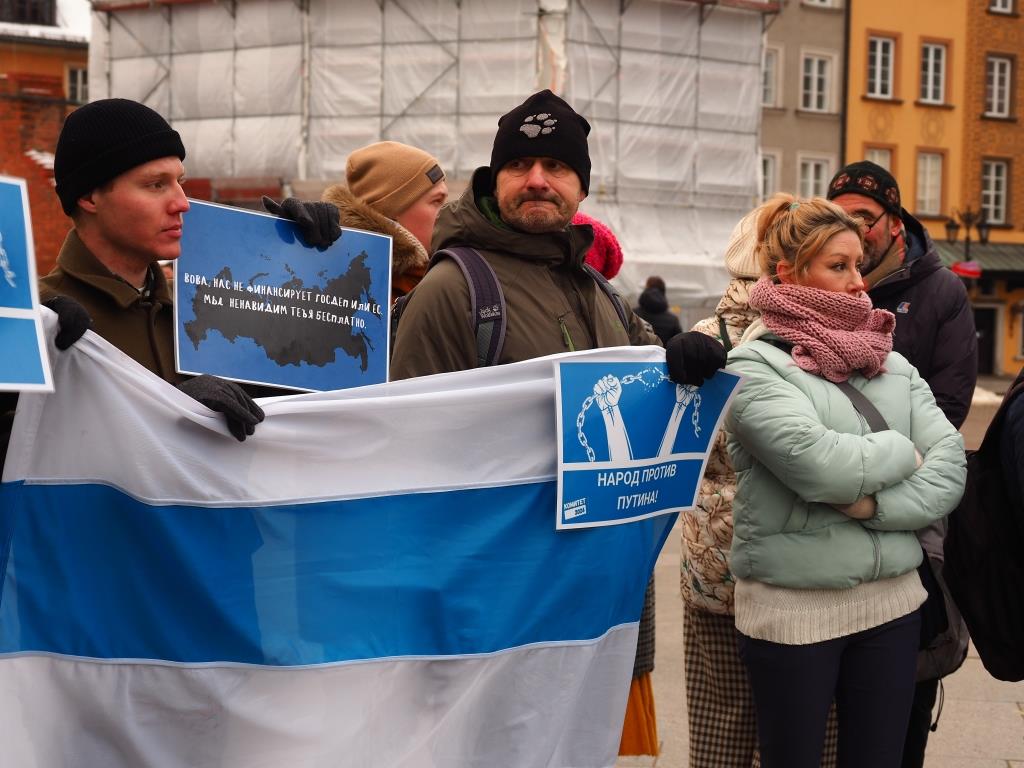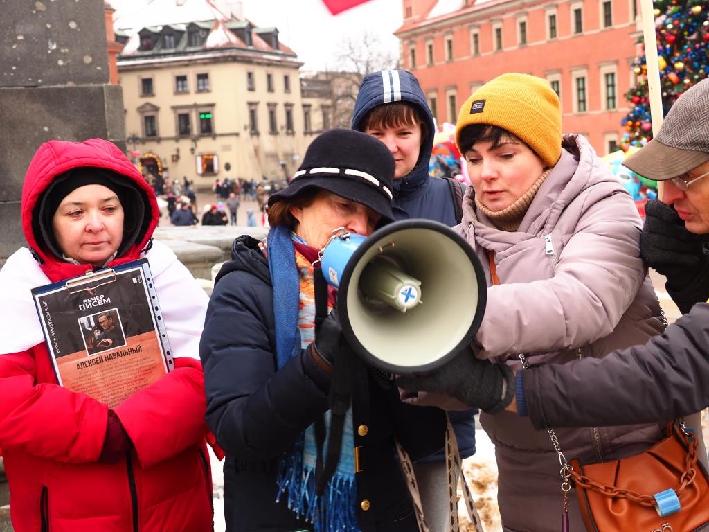 Фоторепортаж с Варшавской части всемирной акции россиян в поддержку политзаключенных и против войны, посвященные трехлетию возвращения Алексея Навального в Россию.