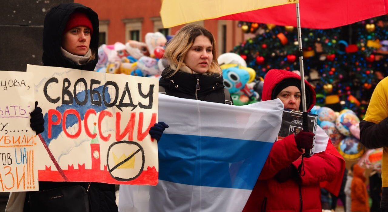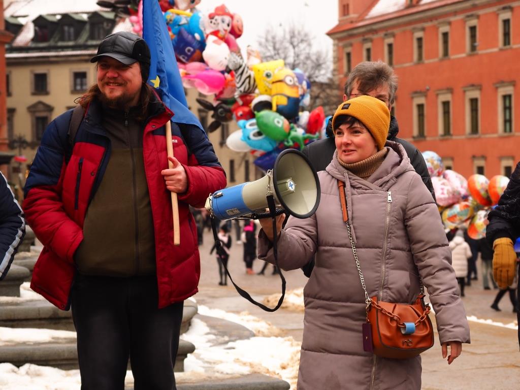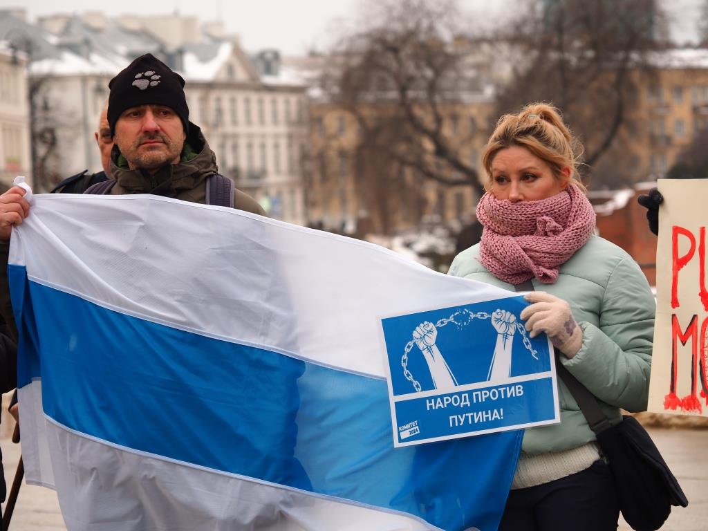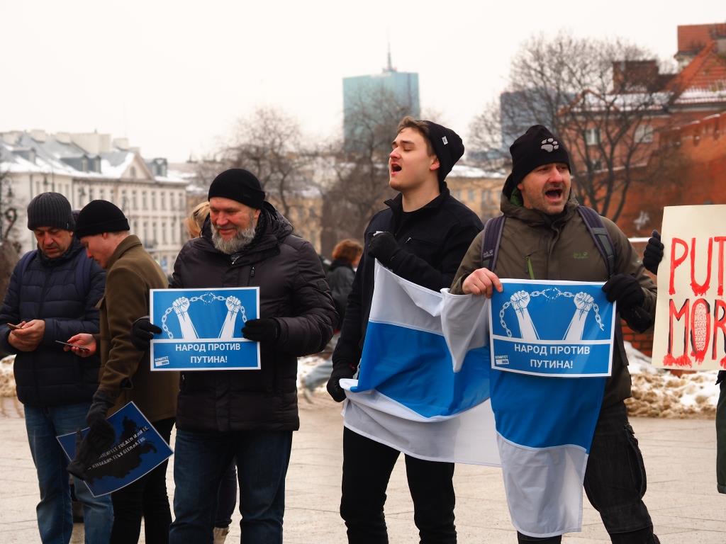 Фоторепортаж с Варшавской части всемирной акции россиян в поддержку политзаключенных и против войны, посвященные трехлетию возвращения Алексея Навального в Россию.